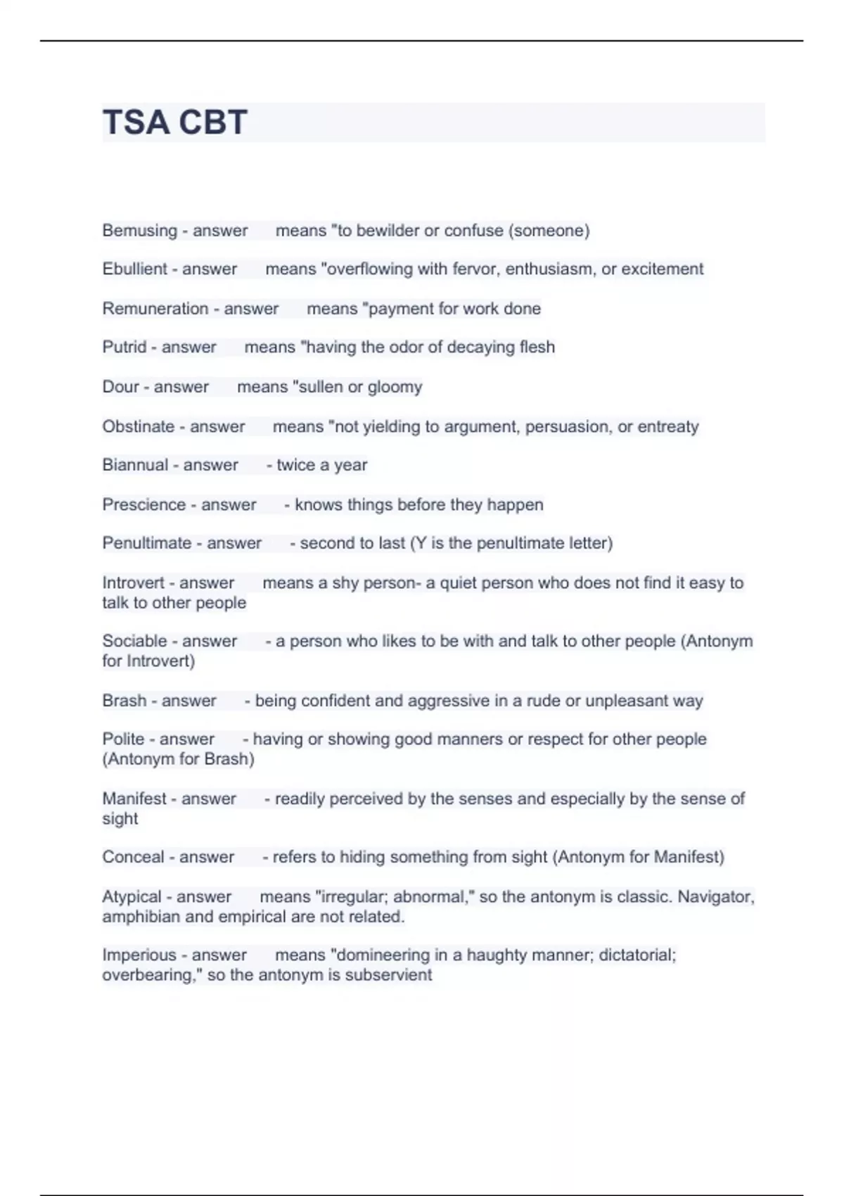 TSA CBT Questions and Answers Fully solved