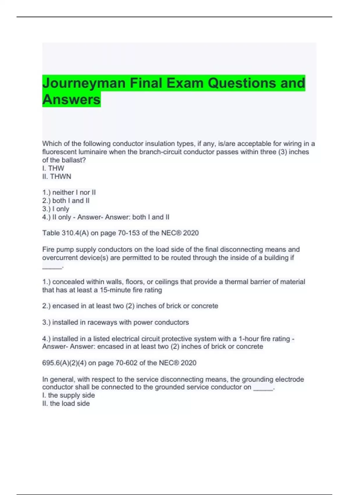 journeyman final exam questions and answers