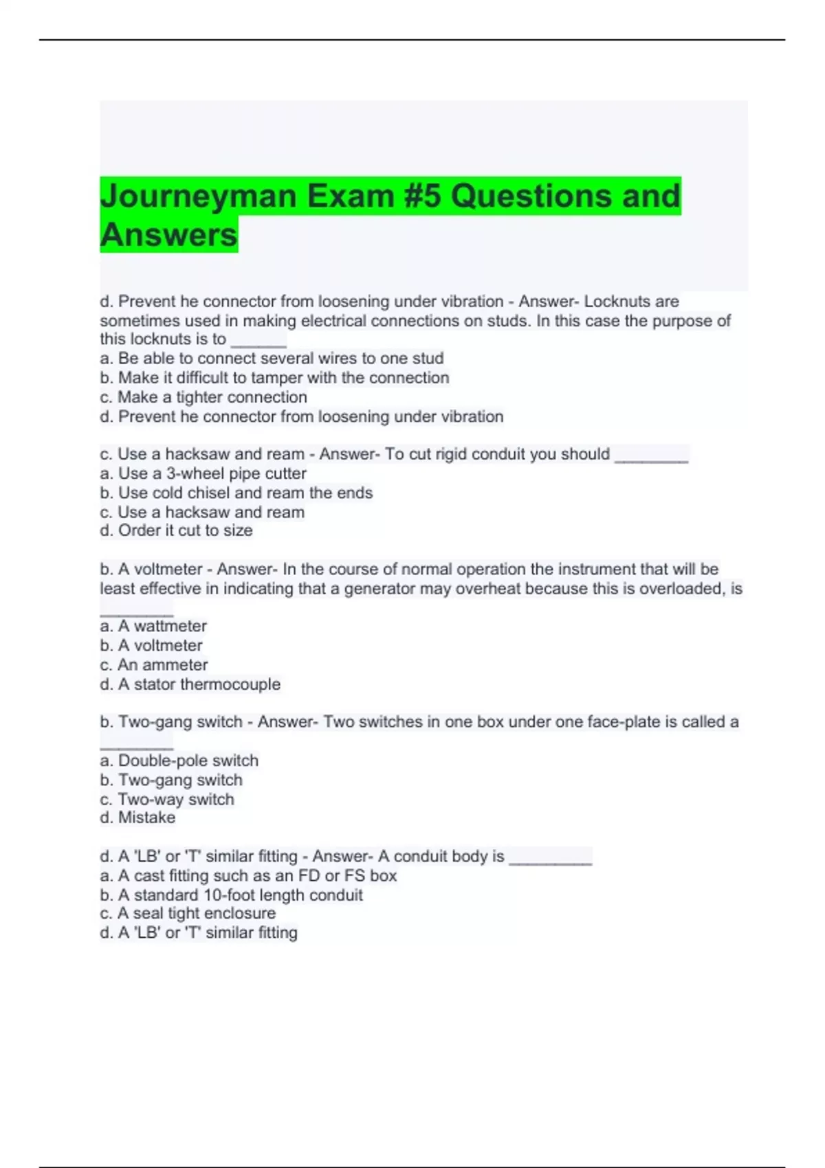 Journeyman Exam #5 Questions and Answers