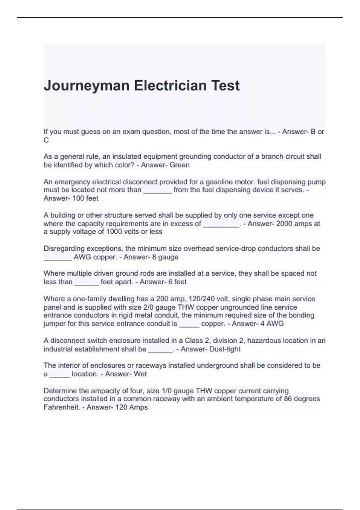 Journeyman Electrician Test-Answered