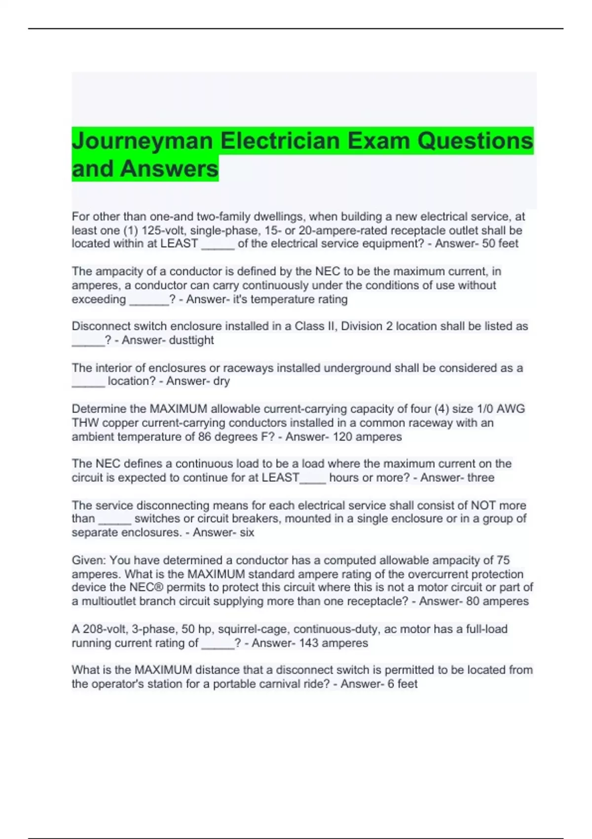 Journeyman Electrician Exam Questions and Answers
