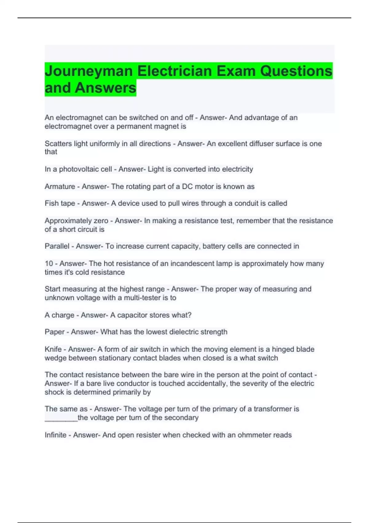 Journeyman Electrician Exam Questions and Answers