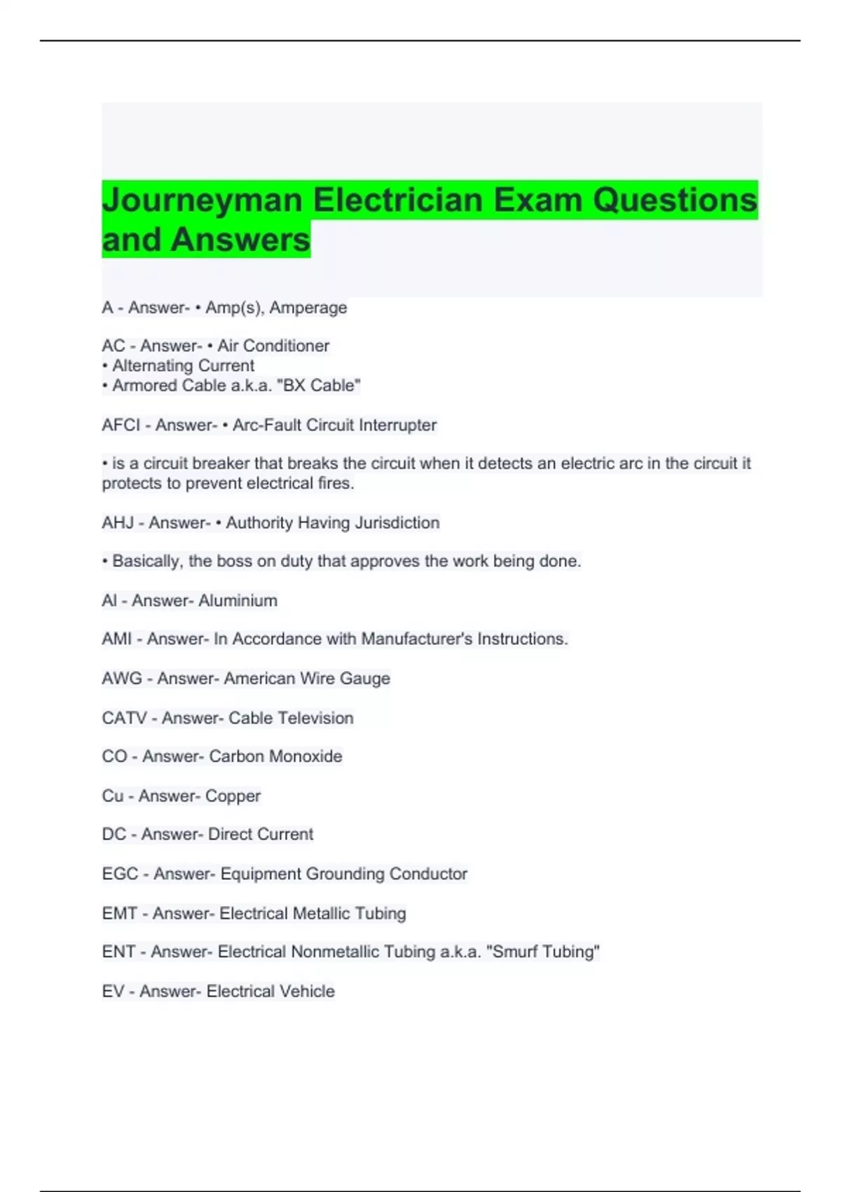 Journeyman Electrician Exam Questions and Answers / Graded A