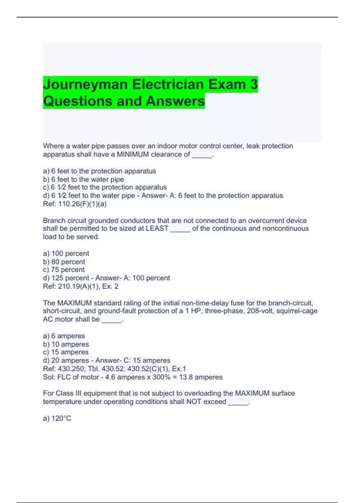 journeyman electrician exam 3 questions and answer