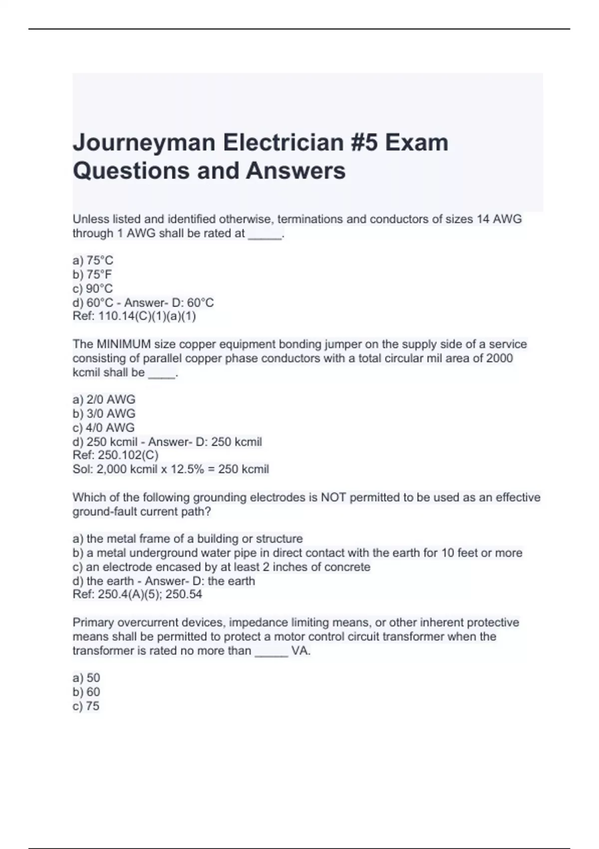 journeyman electrician 5 exam questions and answe