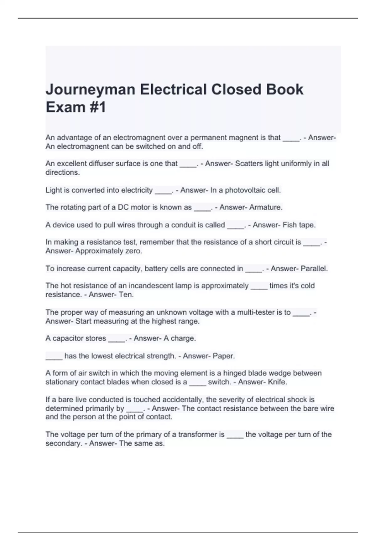 Journeyman Electrical Closed Book Exam #1 Questions and Answers