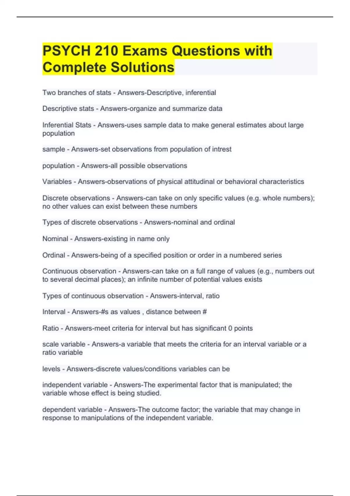 PSYCH 210 Exams Questions with Complete Solutions