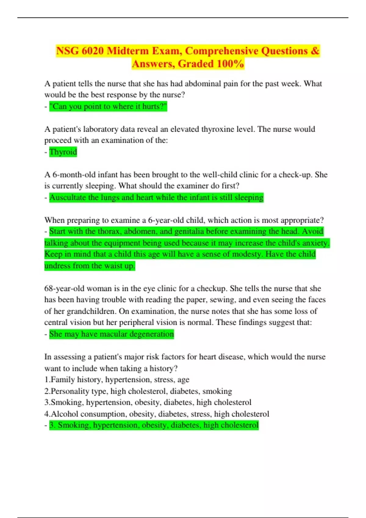 NSG 6020 Midterm Exam, Comprehensive Questions & Answers, Graded 100%