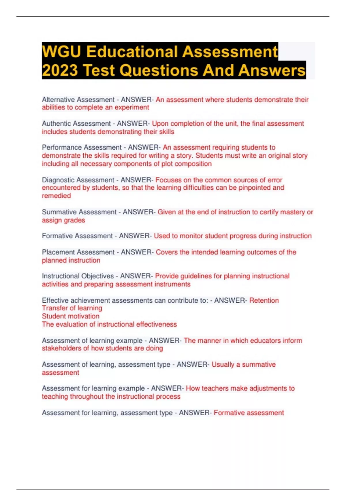 WGU Educational Assessment 2023 Test Questions And Answers