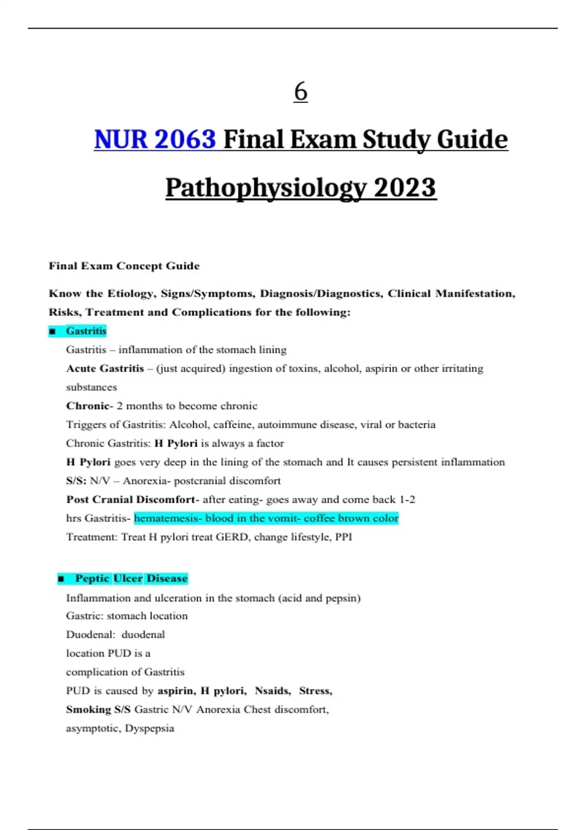 NUR 2063 Final Exam Study Guide