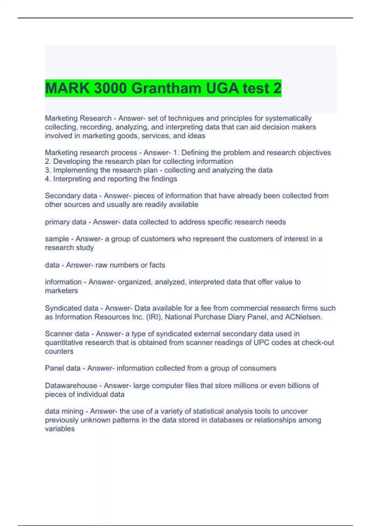 MARK 3000 Grantham UGA test 2-solved