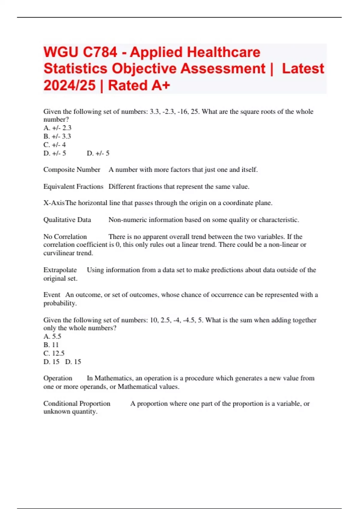 WGU C784 - Applied Healthcare Statistics Objective Assessment | Latest 2024/25 | Rated A+
