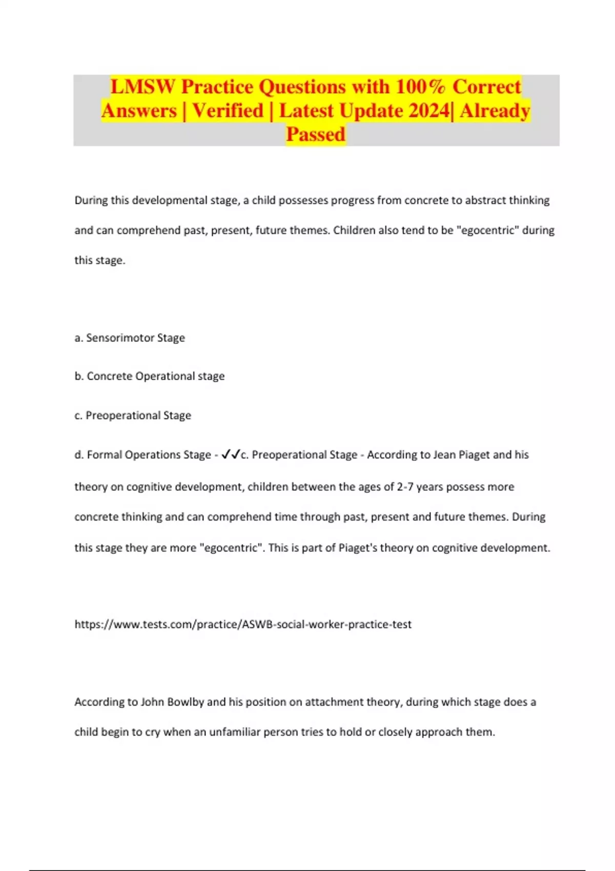 LMSW Practice Questions with 100% Correct Answers | Verified | Latest Update 2024| Already Passed