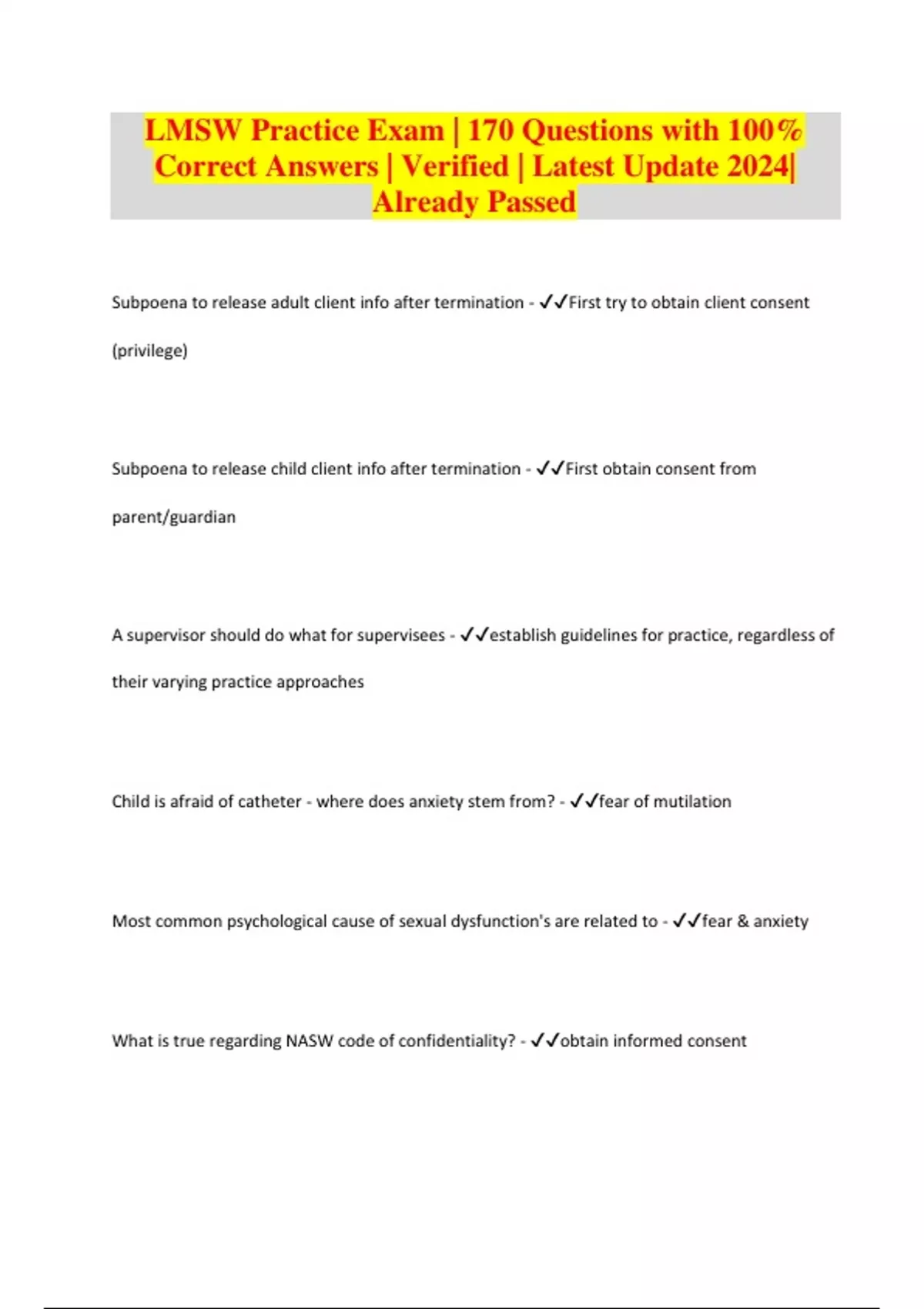 LMSW Practice Exam | 170 Questions with 100% Correct Answers | Verified | Latest Update 2024| Already Passed