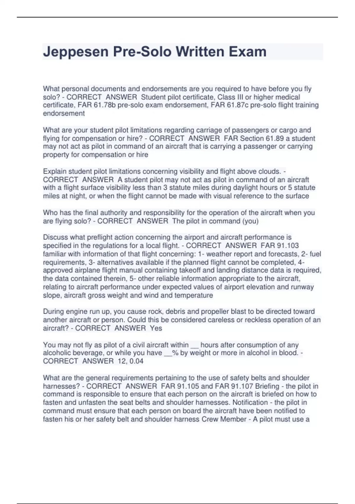 certificate, FAR 61.78b pre-solo exam endorsement, FAR 61.87c pre-solo flight training