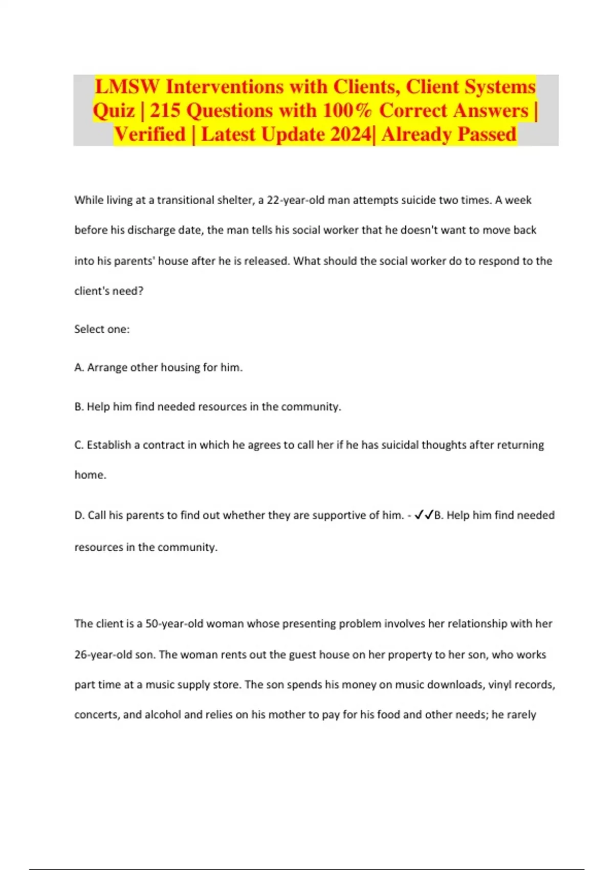 LMSW Interventions with Clients, Client Systems Quiz | 215 Questions with 100% Correct Answers | Verified | Latest Update 2024| Already Passed