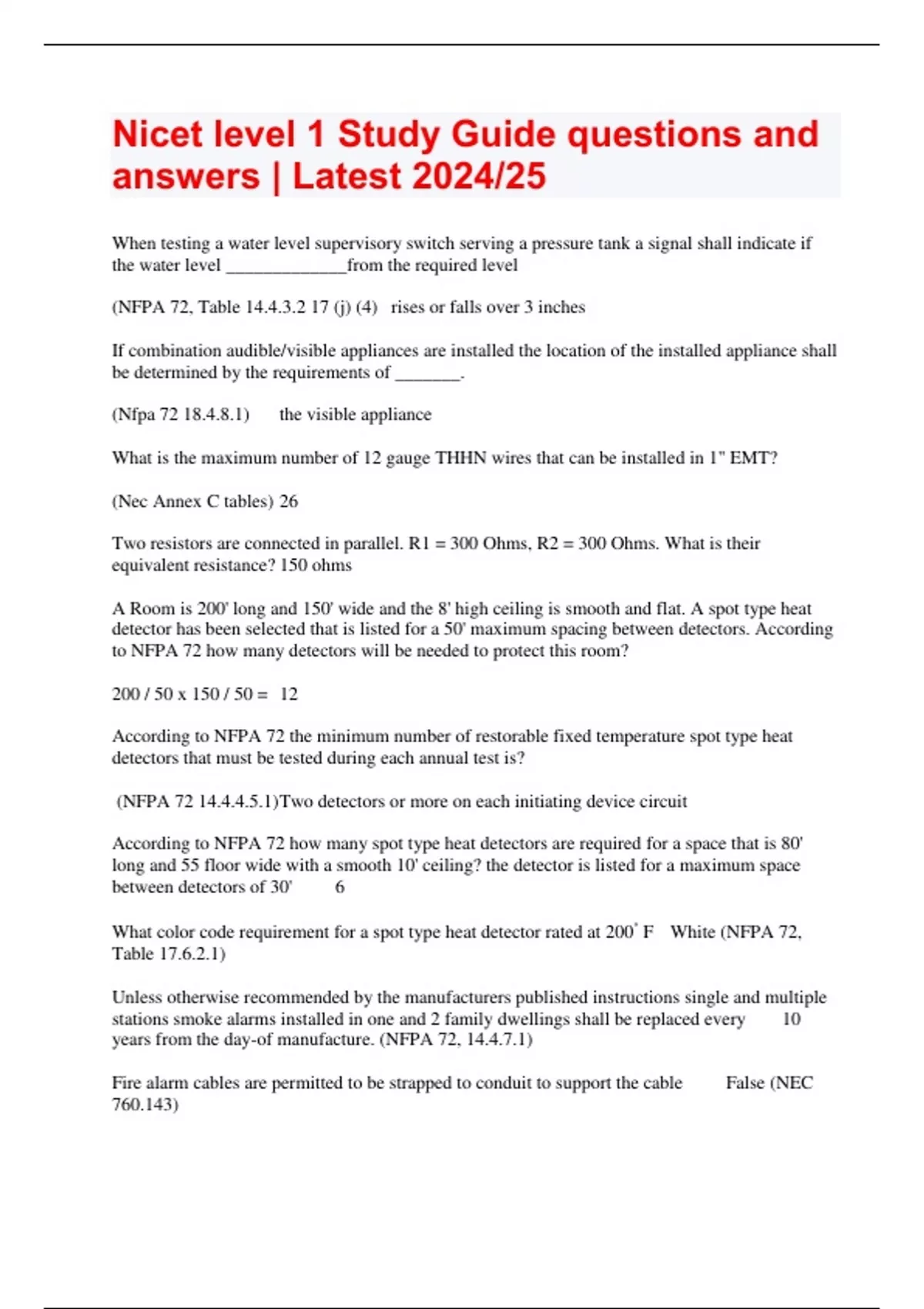 Nicet level 1 Study Guide questions and answers | Latest 2024/25