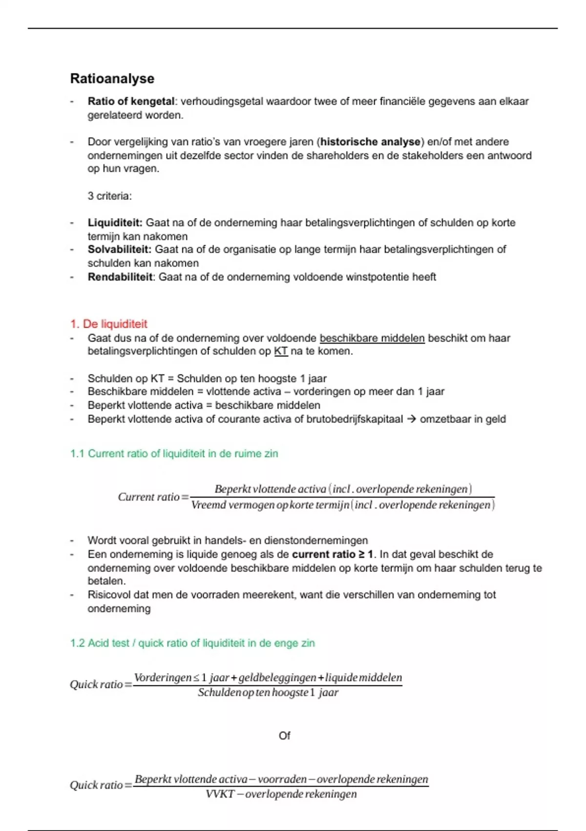 1.2 Acid test / quick ratio of liquiditeit in de enge zin