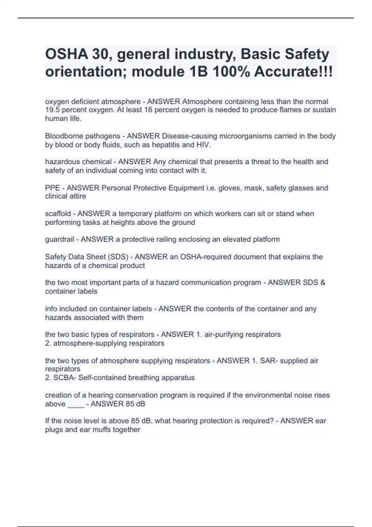 OSHA 30, general industry, Basic Safety orientation; module 1B 100% Accurate!!!