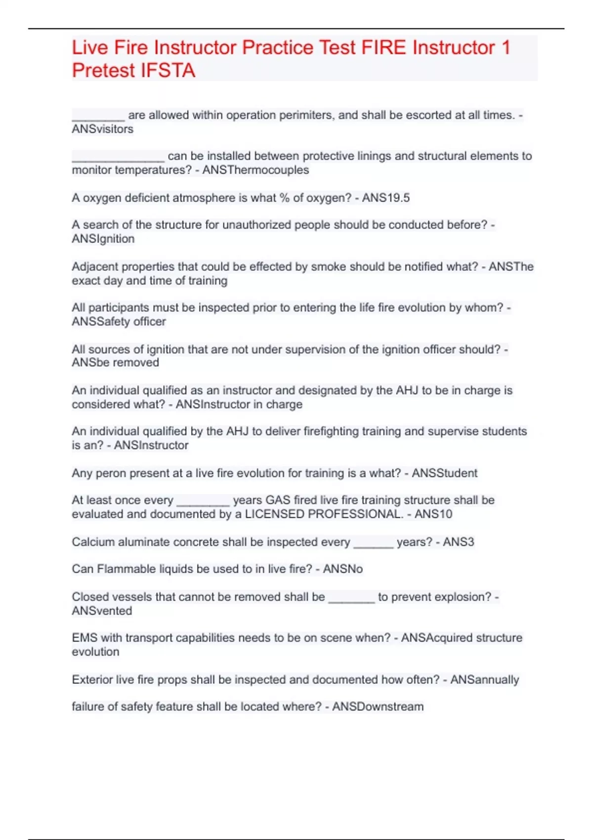 Live Fire Instructor Practice Test FIRE Instructor 1 Pretest IFSTA