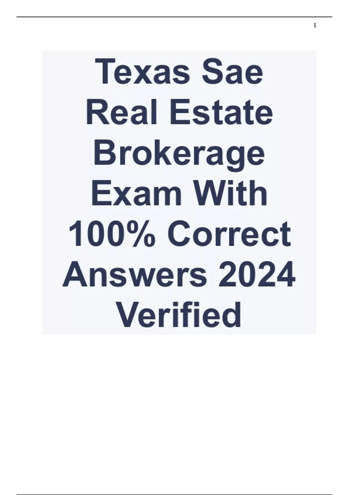 Texas Sae Real Estate Brokerage Exam With 100% Correct Answers 2024 Verified