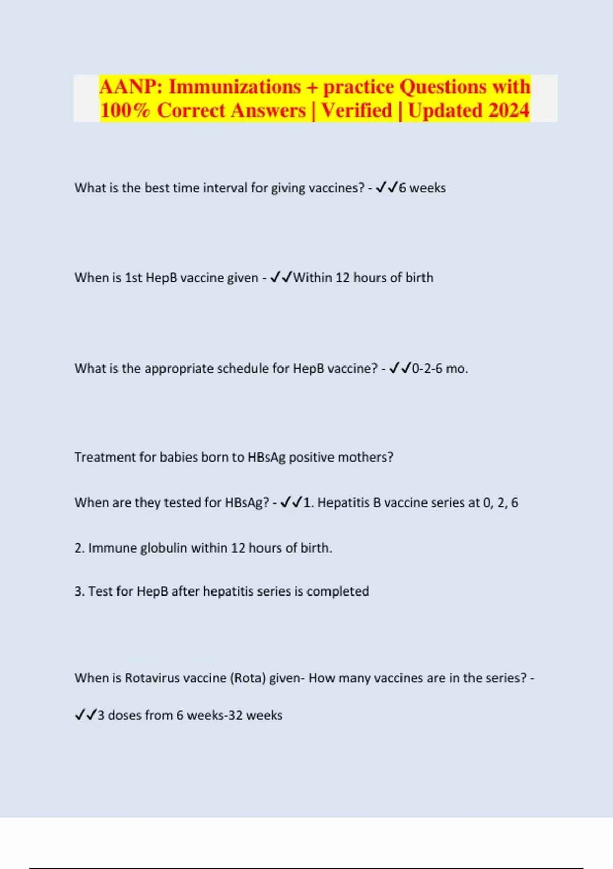 AANP: Immunizations + practice Questions with 100% Correct Answers | Verified | Updated 2024