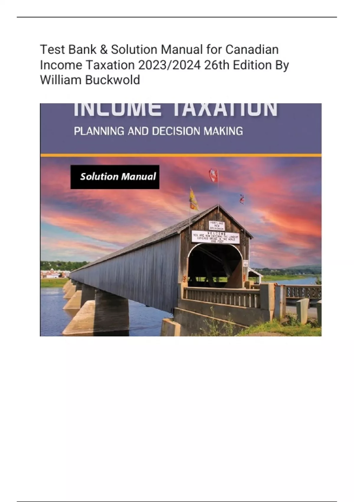 Test Bank & Solution Manual for Canadian Income Taxation 2023/2024 26th Edition By William Buckwold