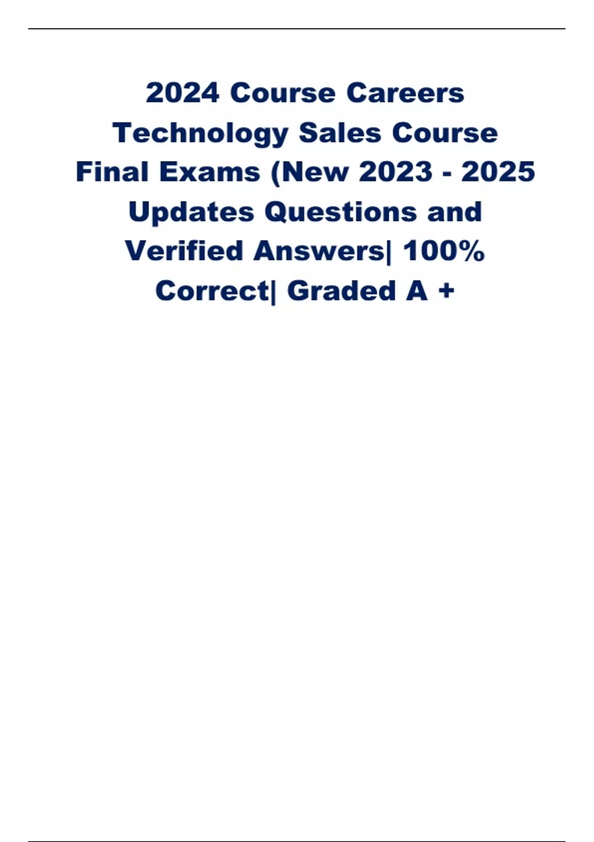 2024 Course Careers Technology Sales Course Final Exams (New Updates Questions and Verified Answers| 100% Correct| Graded A + What is a Sales Cadence? A sequence of sales activities where the sales team interacts with leads What is the Sales