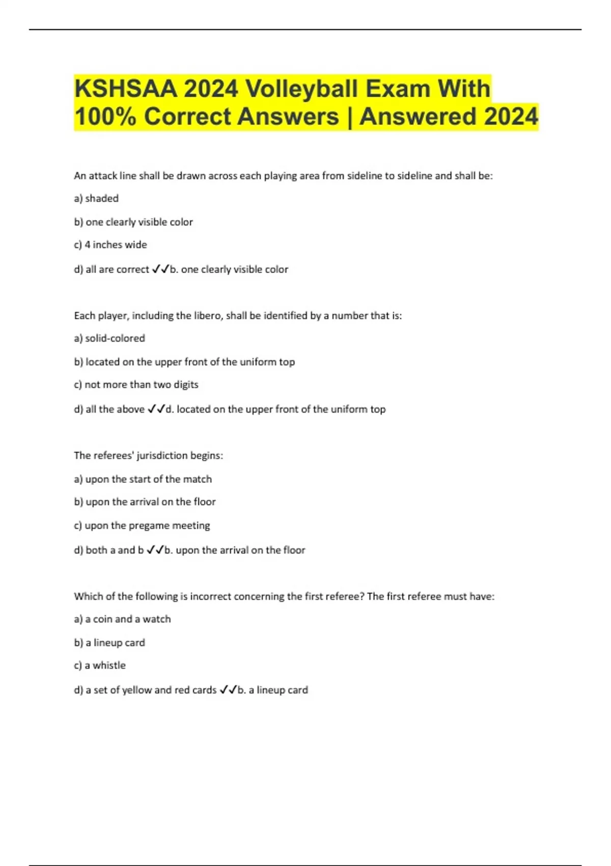 KSHSAA 2024 Volleyball Exam With 100% Correct Answers | Answered 2024