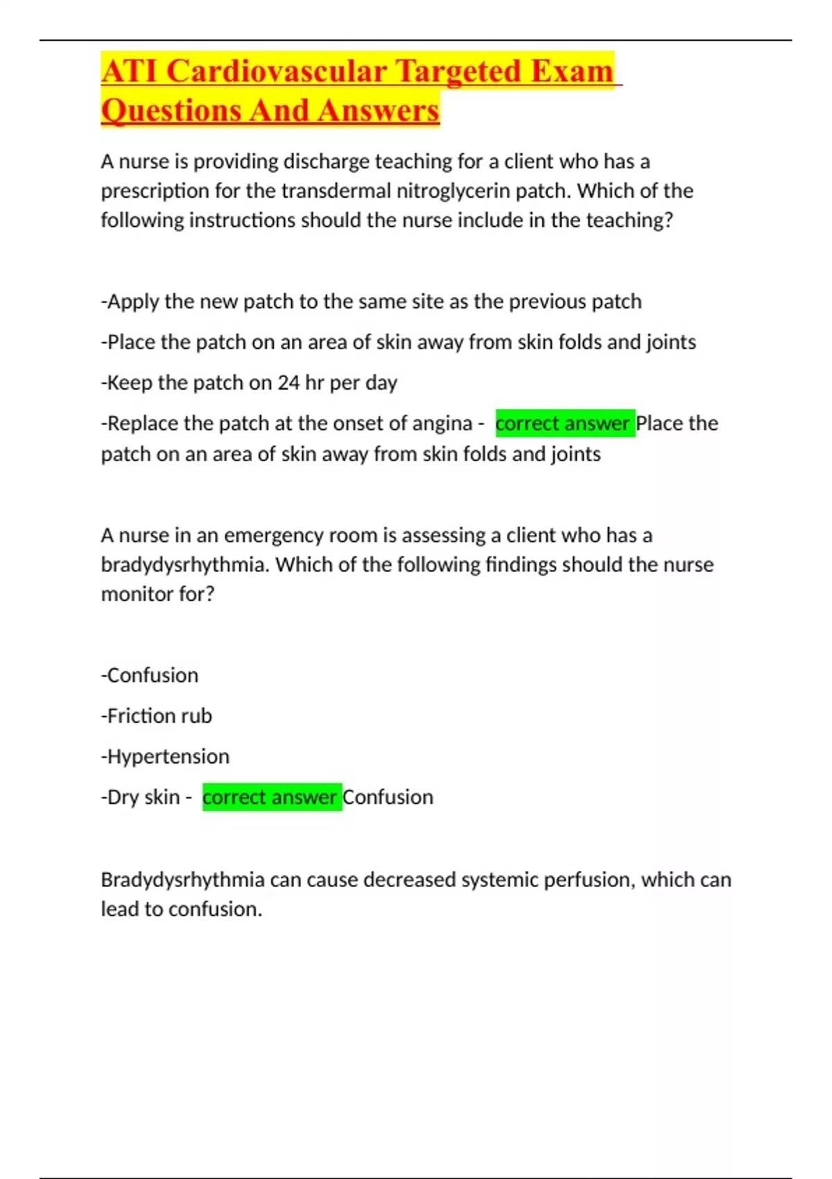 ATI Cardiovascular Targeted Exam Questions And Answers