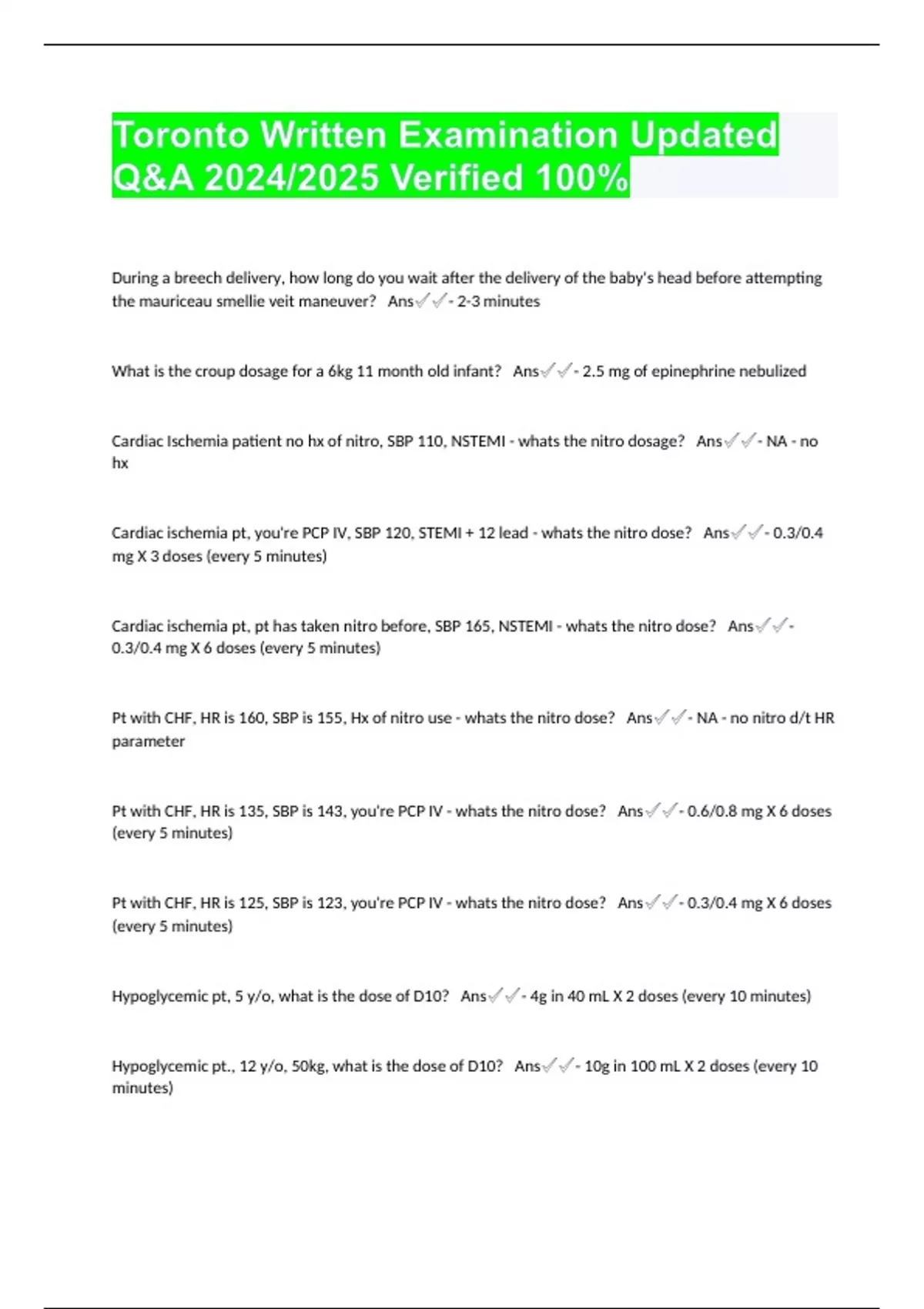Toronto Written Examination Updated Q&A 2024/2025 Verified 100%