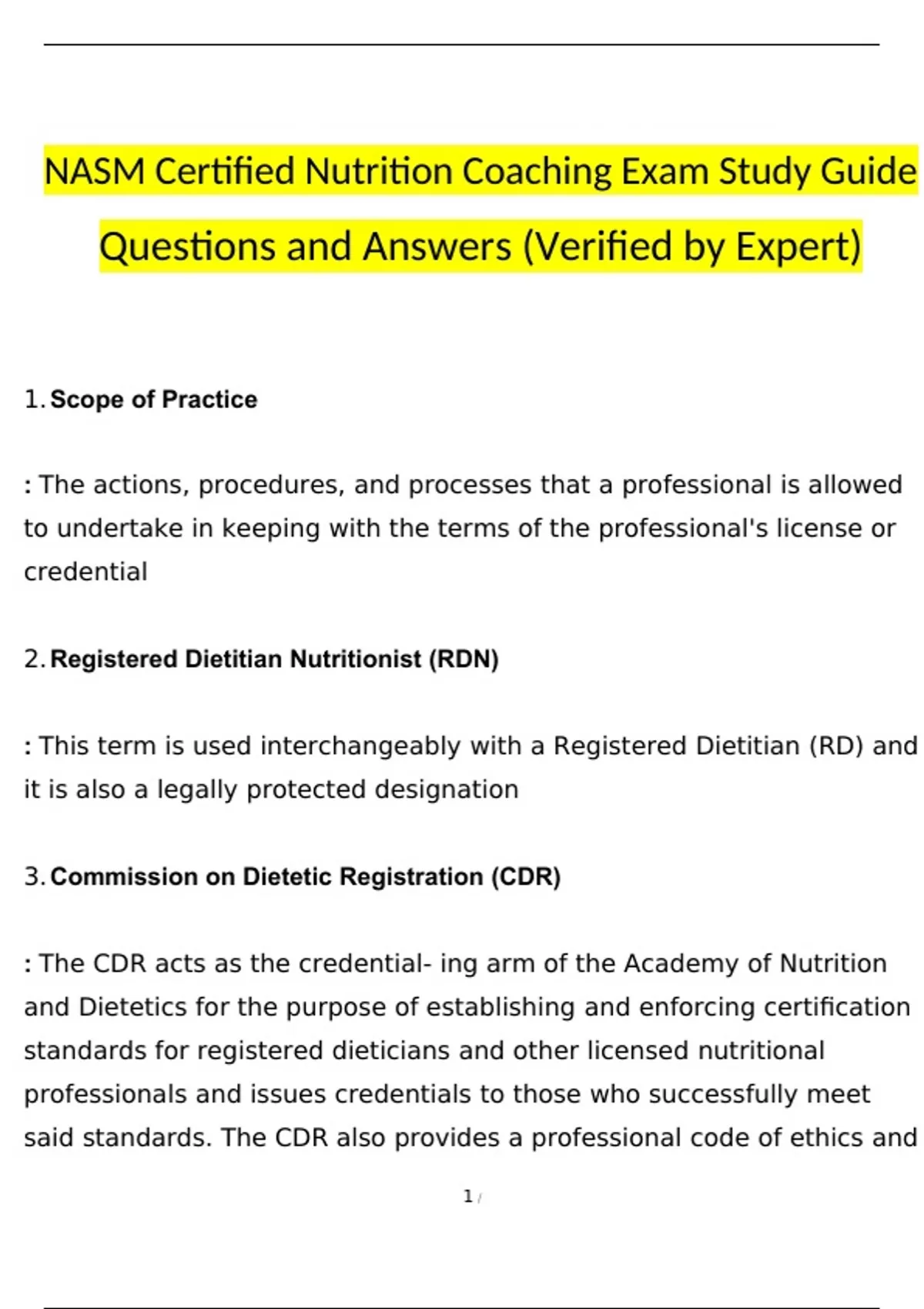 NASM Certified Nutrition Coaching Exam Study Guide Questions and Answers (2024 / 2025) (Verified Answers)