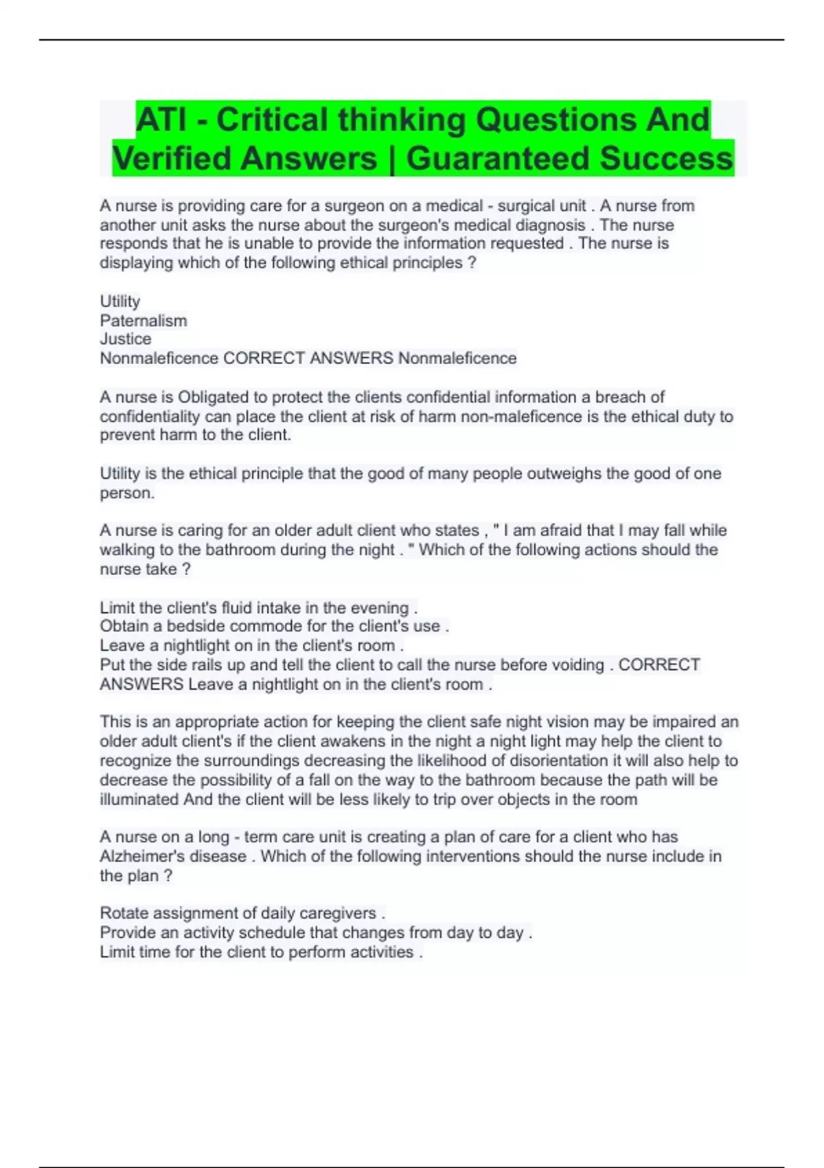 ATI - Critical thinking Questions And Verified Answers | Guaranteed Success