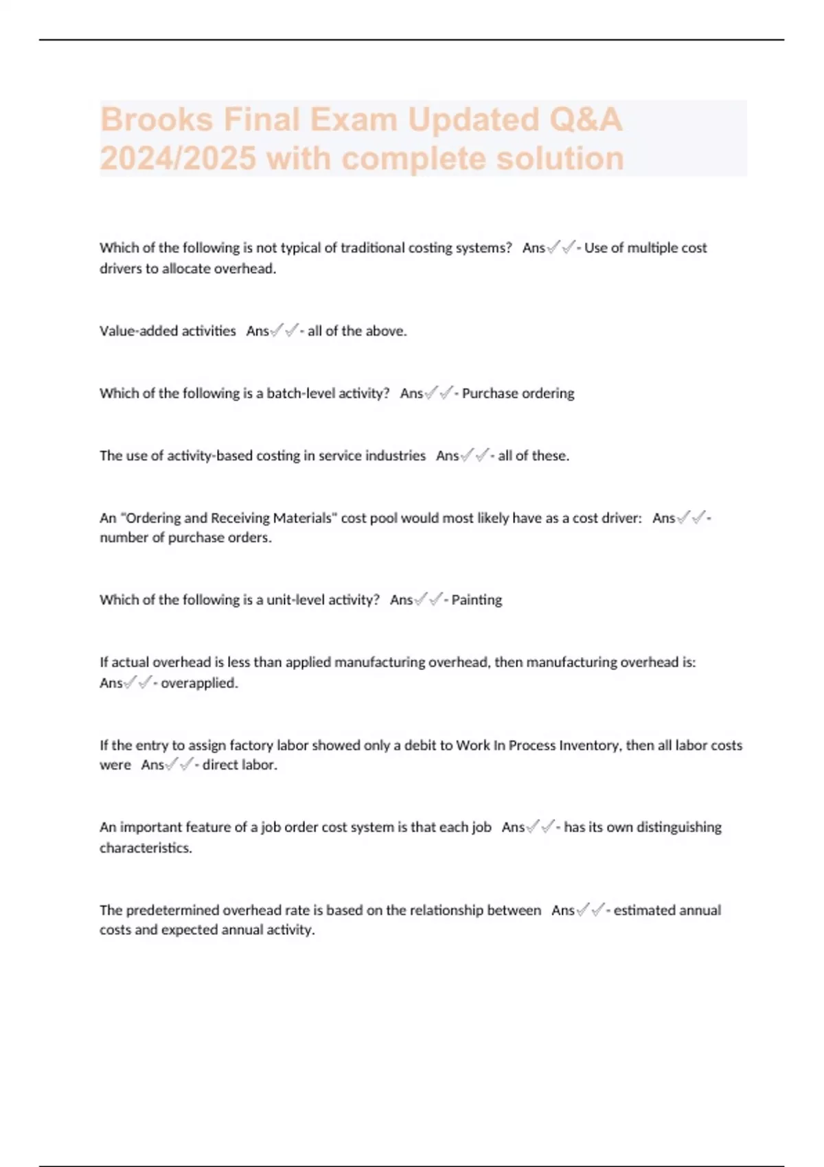 Brooks Final Exam Updated Q&A 2024/2025 with complete solution