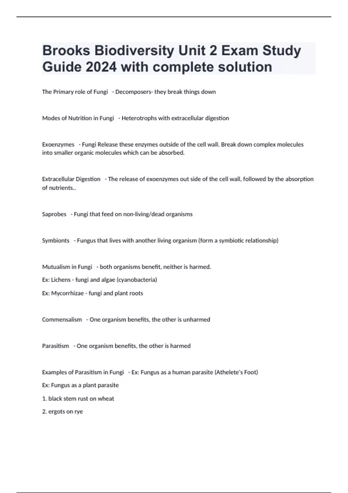 Brooks Biodiversity Unit 2 Exam Study Guide 2024 with complete solution