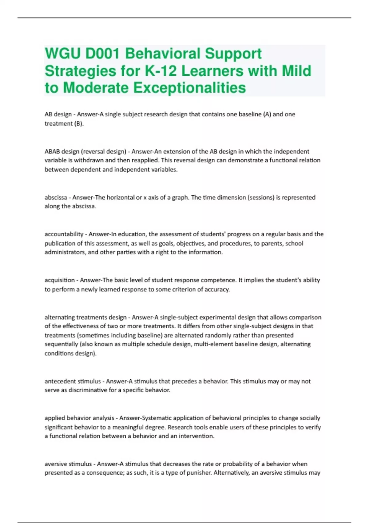 WGU D001 Behavioral Support Strategies for K-12 Learners with Mild to Moderate Exceptionalities