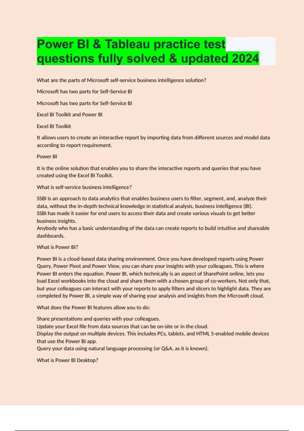 Power BI & Tableau practice test questions fully solved & updated 2024