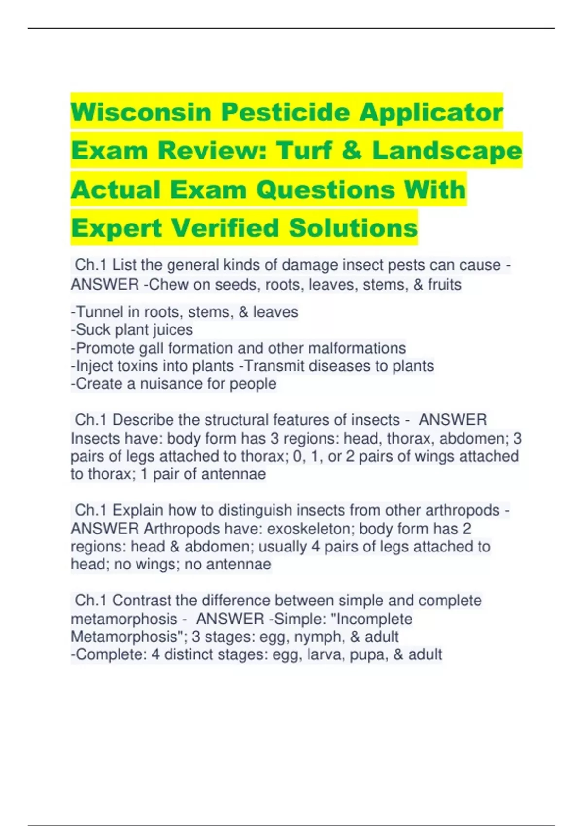 Wisconsin Pesticide Applicator Exam Review: Turf & Landscape Actual Exam Questions With Expert Verified Solutions