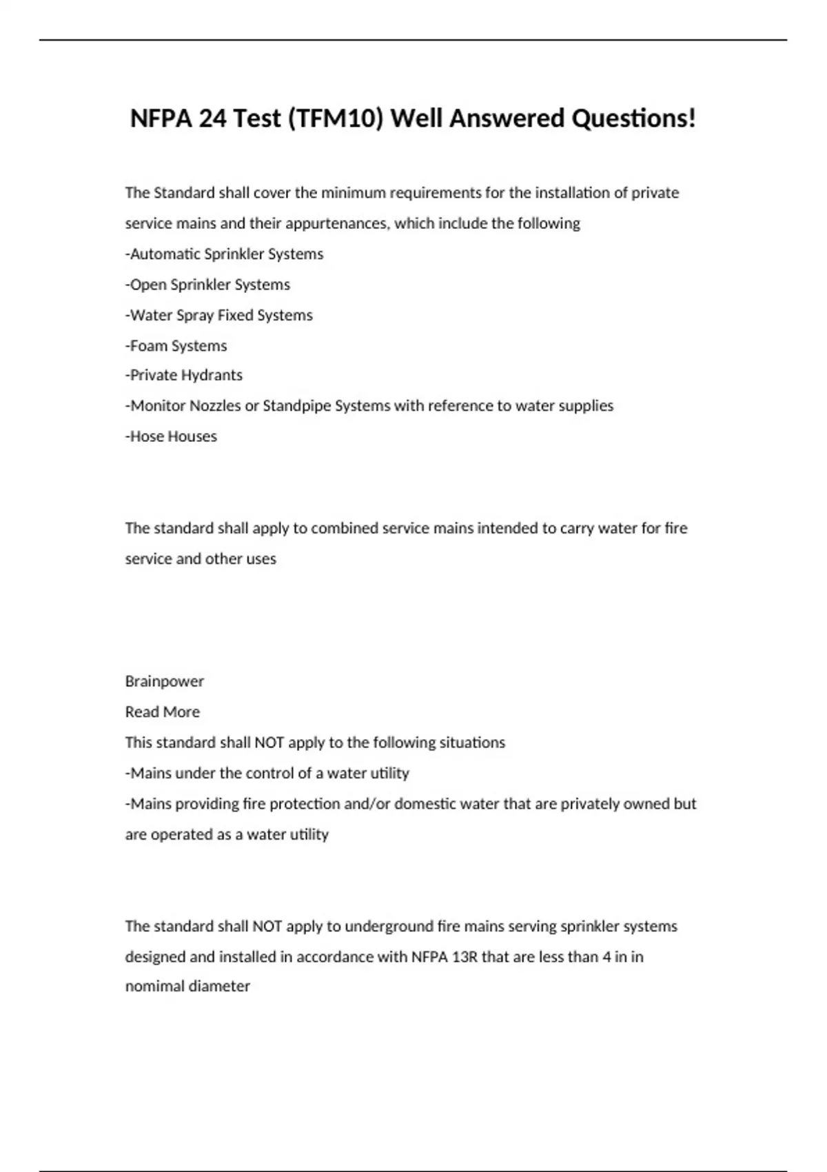 NFPA 24 Test (TFM10 ) Well Answered Questions!