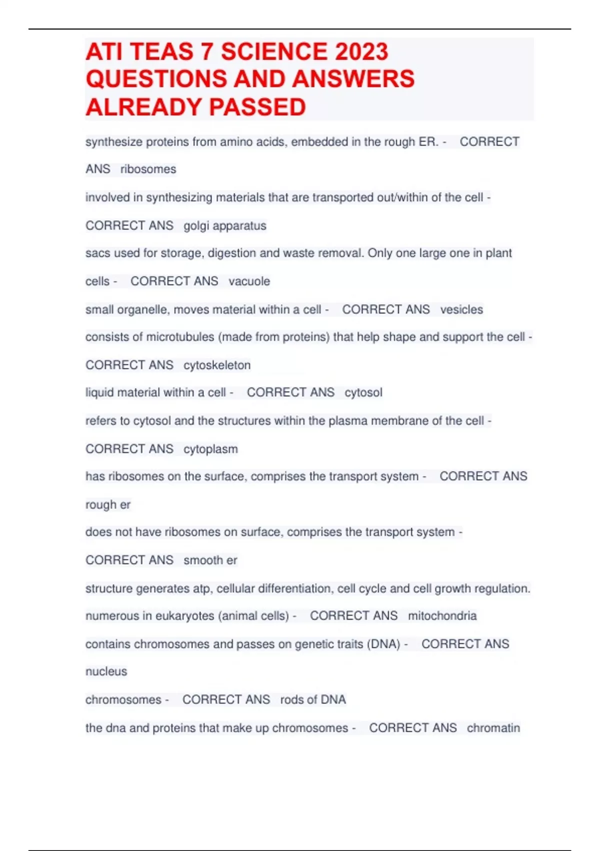 ATI TEAS 7 SCIENCE 2023 QUESTIONS AND ANSWERS ALREADY PASSED