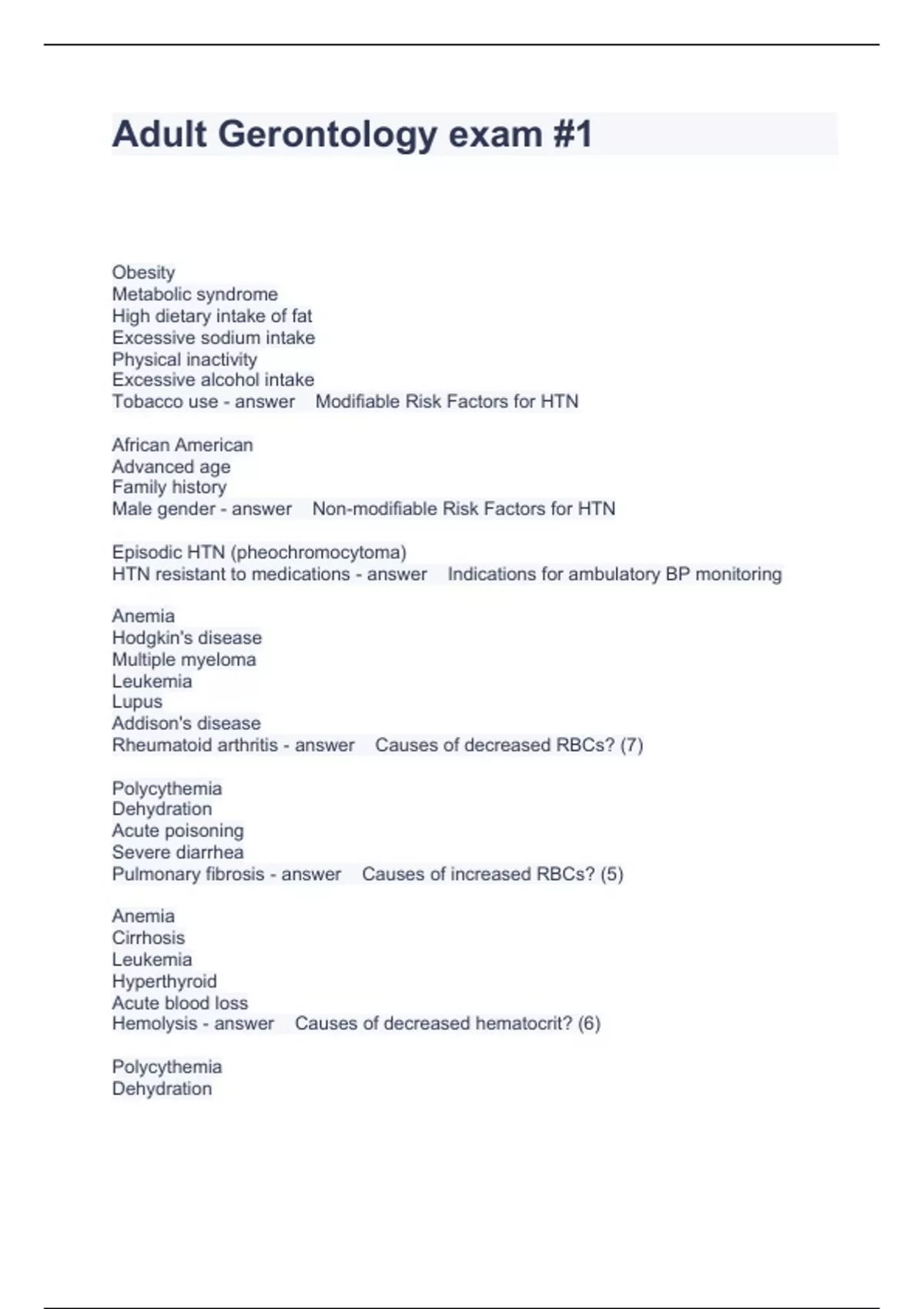 Adult Gerontology Exam test compilation Bundle