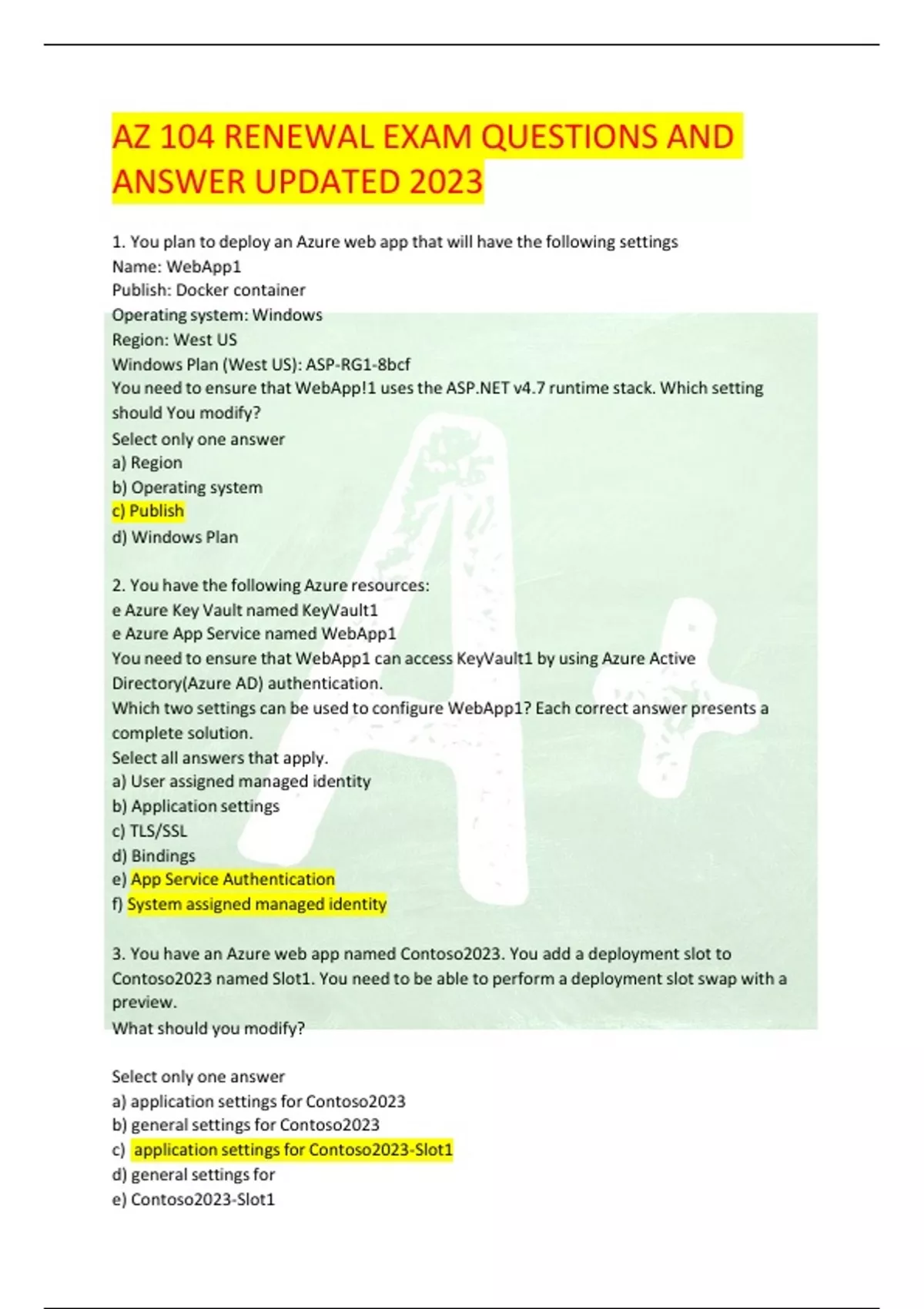 AZ 104 RENEWAL EXAM QUESTIONS AND ANSWER UPDATED 2023