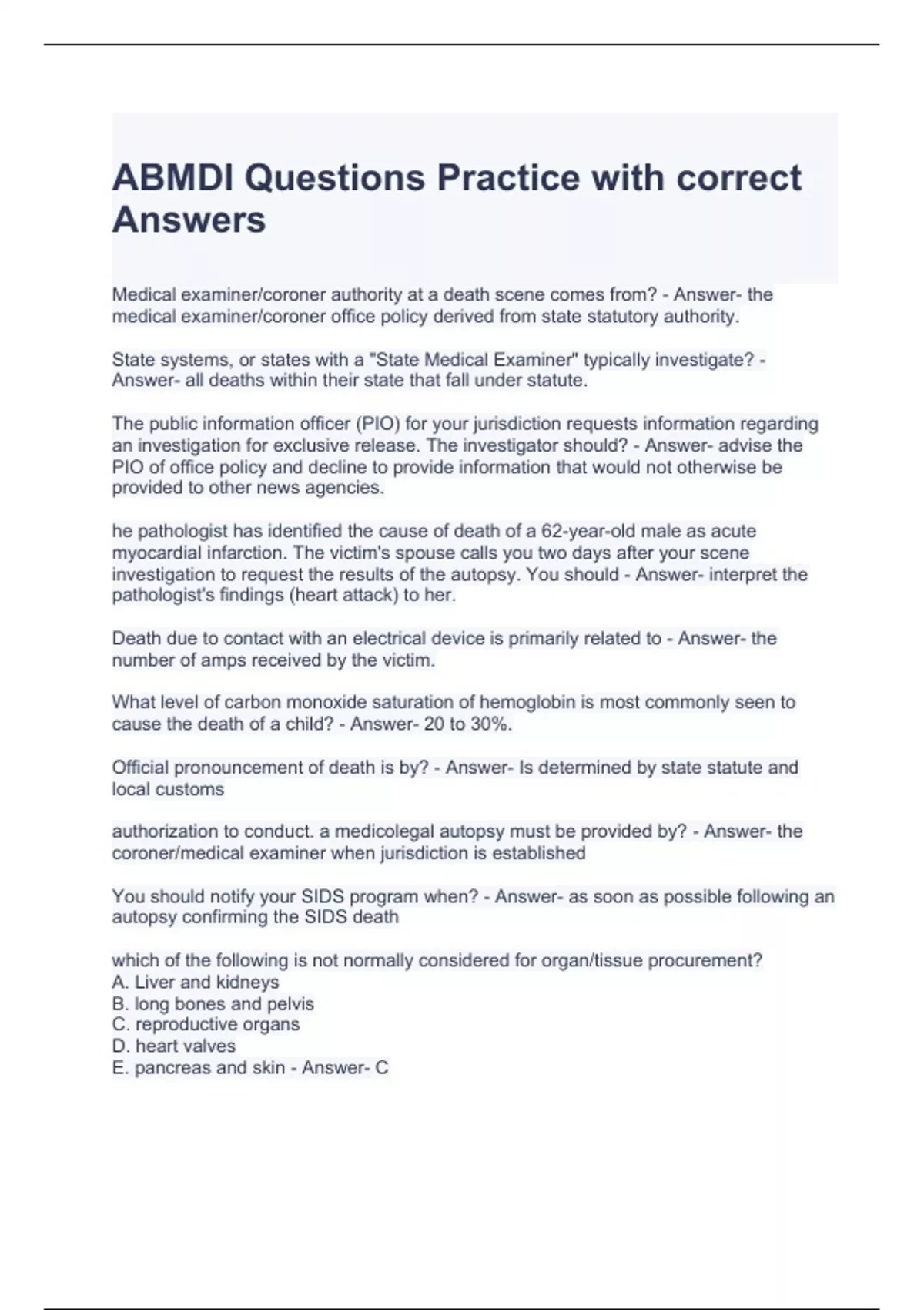 ABMDI Questions Practice with correct Answers 100%