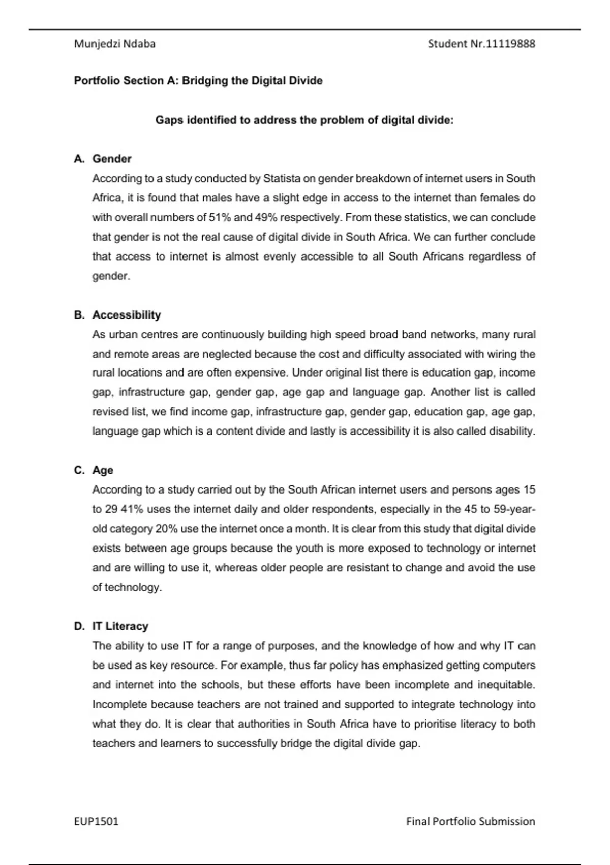 that gender is not the real cause of digital divide in South Africa. We can further conclude