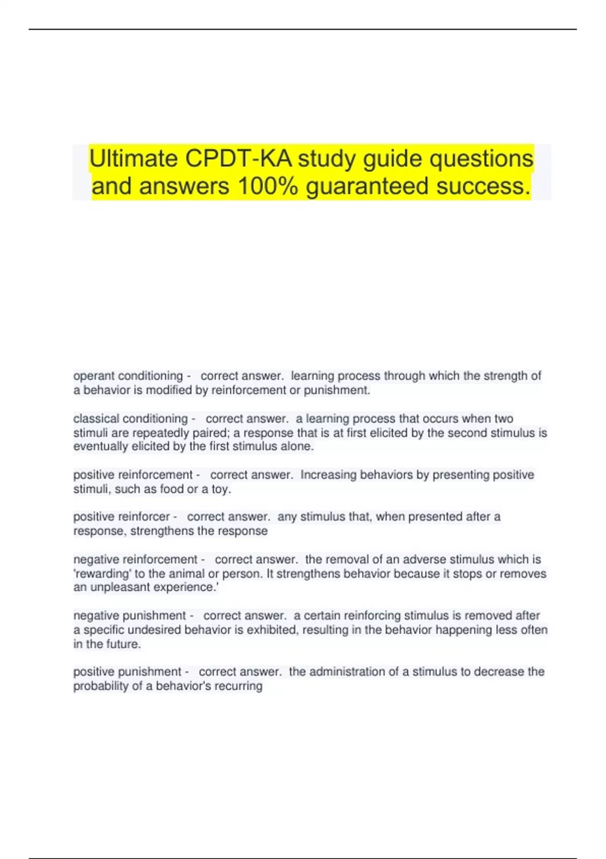 Ultimate CPDT-KA study guide questions and answers 100% guaranteed success.