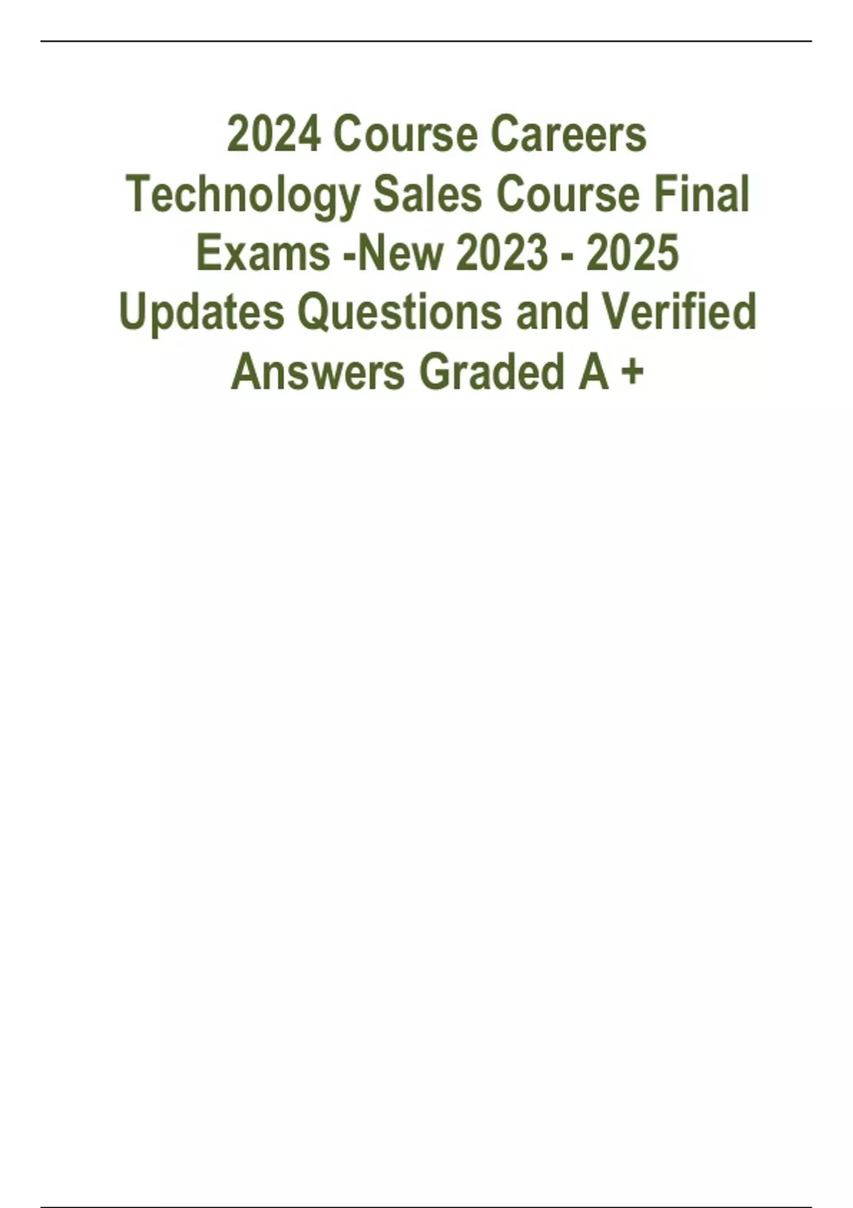 2024 Course Careers Technology Sales Course Final Exams -New Updates Questions and Verified Answers Graded A +