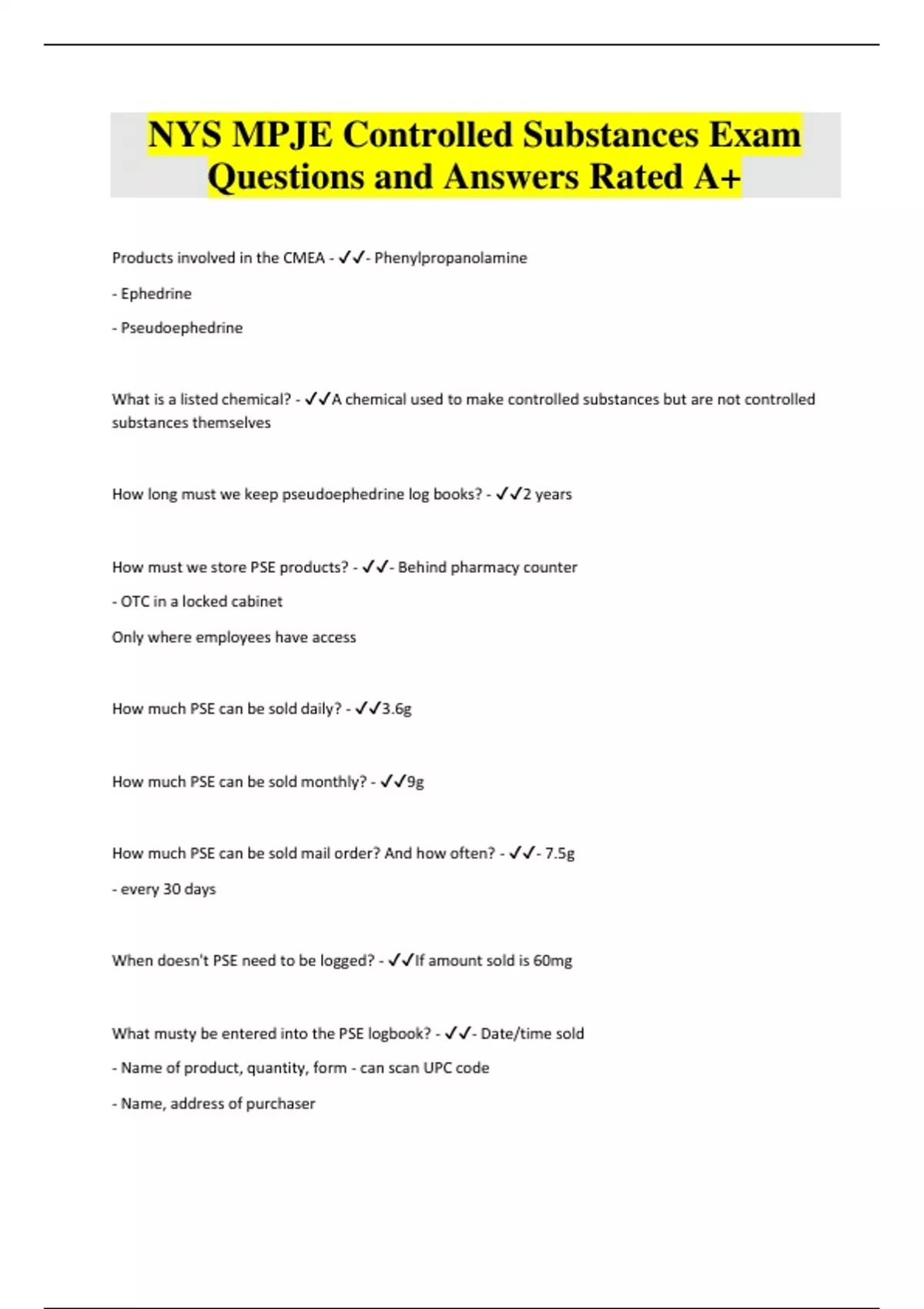 Pharmacy Law - New York MPJE Exam Questions and Answers Rated A+