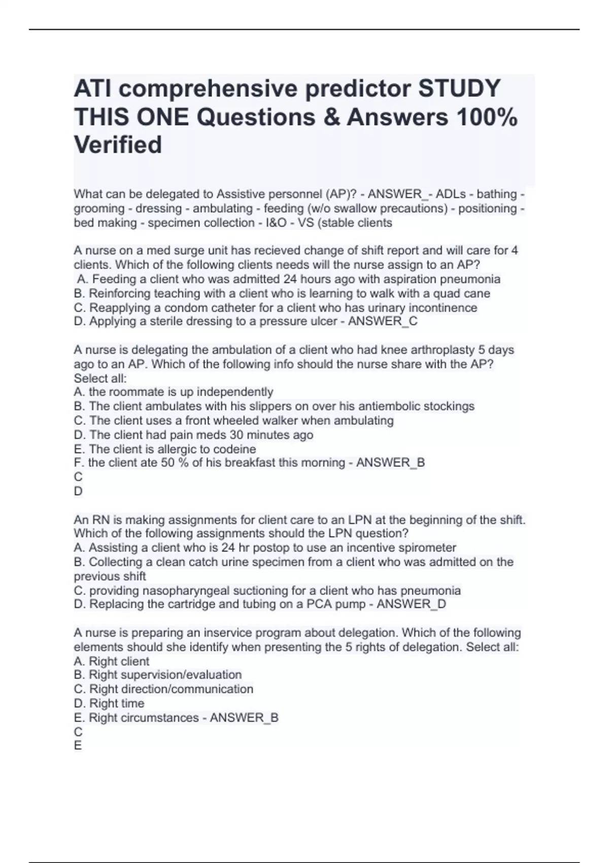 Which of the following assignments should the LPN question?