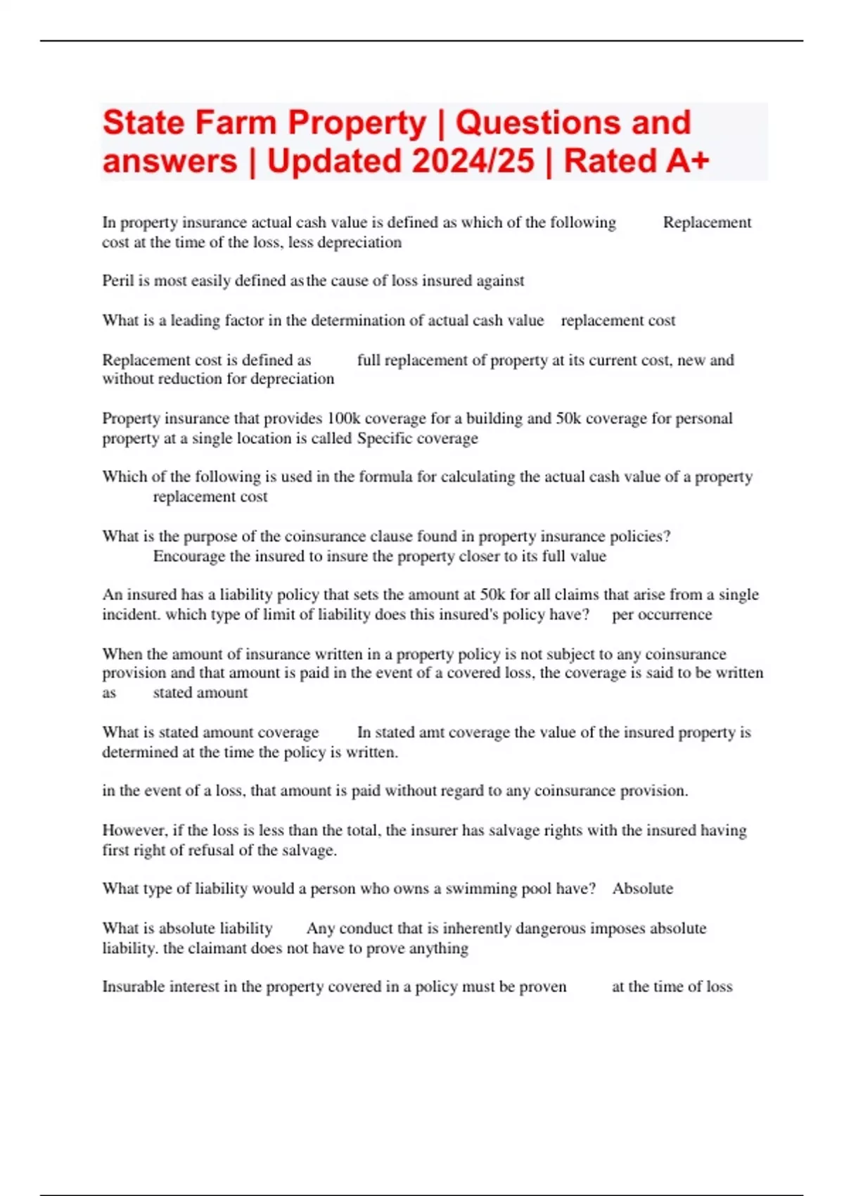 State Farm Property | Questions and answers | Updated 2024/25 | Rated A+
