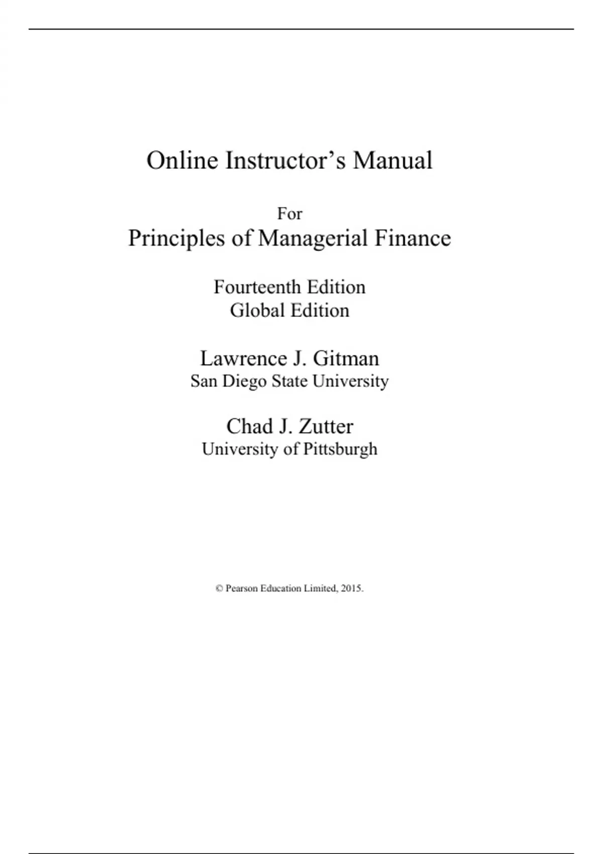 Online Instructor’s Manual Principles of managerial finance solution 14 edition by lawrence j gitman with all chapter 100% complete solution Guaranteed success